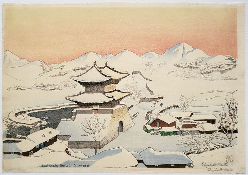 A highly sought-after pre-earthquake design. The earliest of Keith's watercolors to be turned into a woodblock print by S. Watanabe.