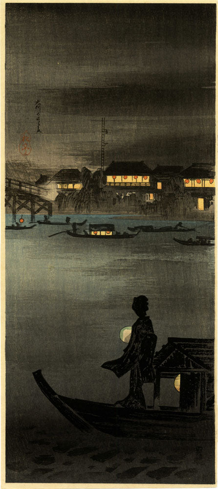 Notes: Exceptional pre-quake night scene by the artist. S. Watanabe Print Catalog Stamp #896, on reverse.