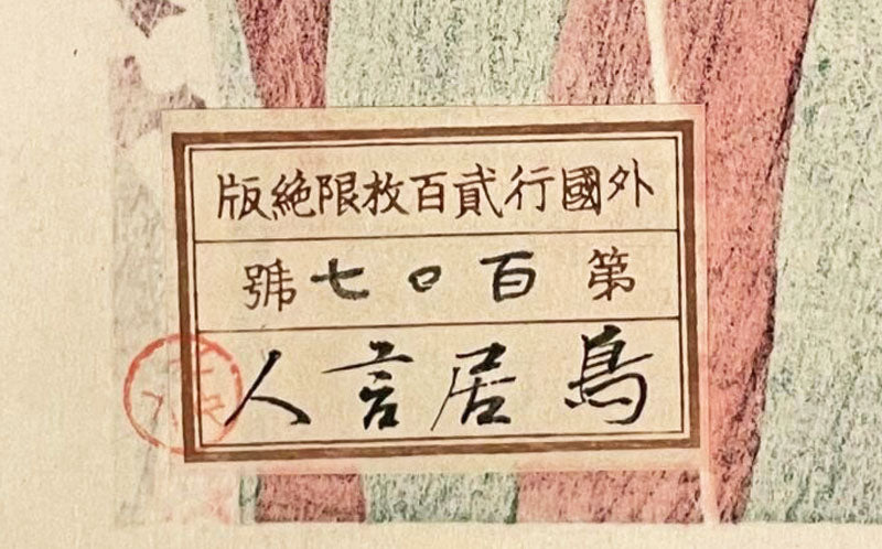 Notes: Signed: Kotondo ga. Publishers: Sakai-Kawaguchi (stamp Sakai-Kawaguchi gōhan). Dated: 10th month of Showa 4 (1929). Numbered on reverse: 107/200.
